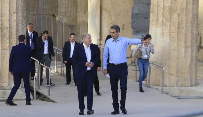 Στην Ακρόπολη o Όλαφ Σολτς – Ξεναγήθηκε από τον Κυριάκο Μητσοτάκη