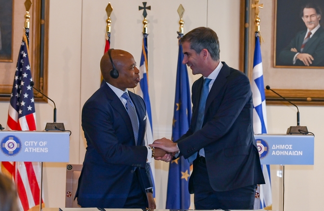 Στην Αθήνα ο δήμαρχος Νέας Υόρκης – Υπέγραψε με τον Κώστα Μπακογιάννη το Σύμφωνο Αδελφοποίησης