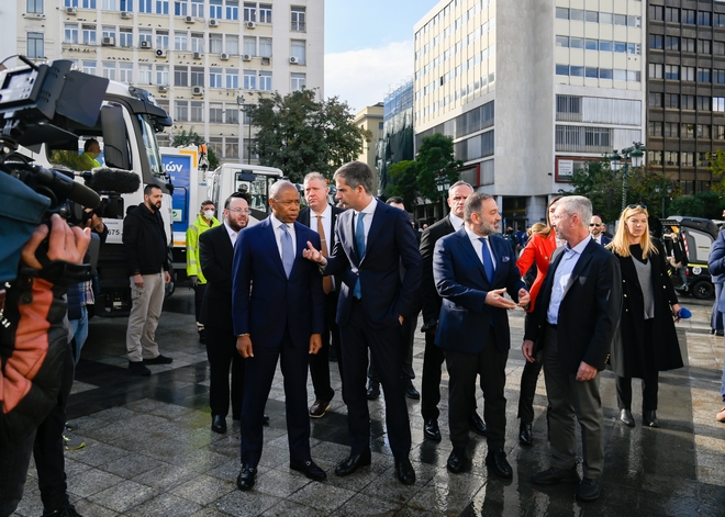 Με την επίδειξη του ψηφιακού πίνακα που αφορά τη διεκπεραίωση των αιτημάτων των δημοτών της πρωτεύουσας ξεκίνησε το πρωί η συνάντηση του δημάρχου Αθηναίων, Κώστα Μπακογιάννη, με τον δήμαρχο της Νέας Υόρκης, Έρικ Άνταμς, στο δημαρχιακό μέγαρο της Αθήνας.