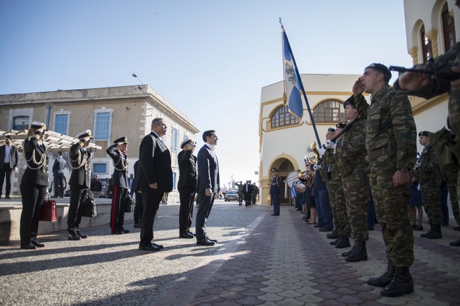 Για να προσθέσει: «Και να στείλουμε και μήνυμα και στους γείτονες μας, μήνυμα ειρήνης, συνεργασίας, φιλίας, αλλά ταυτόχρονα και αποφασιστικότητας». «Συνεργασίας, αλληλεγγύης και φιλίας», τόνισε, «γιατί η πατρίδα μας υπερασπίζεται παναθρώπινες αξίες διαχρονικά, την αξία της ειρήνης, της αλληλεγγύης, της συνεργασίας». «Ταυτόχρονα όμως και αποφασιστικότητας να υπερασπιστούμε τα κυριαρχικά μας δικαιώματα που απορρέουν από τις διεθνείς συνθήκες, τις διεθνείς συμβάσεις και το διεθνές δίκαιο», υπογράμμισε.