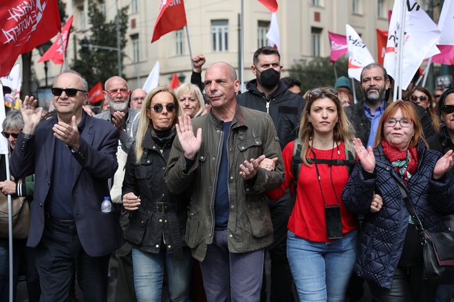 Στην πορεία στο κέντρο της Αθήνας για τα Τέμπη ο Γιάνης Βαρουφάκης