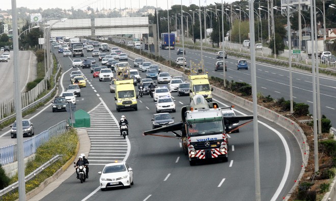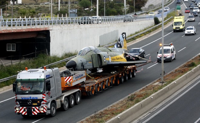 Συγκεκριμένα, οι οδηγοί ήταν υποχρεωμένοι να κινούνται με πολύ χαμηλές ταχύτητες πίσω από τα οχήματα ασφαλείας, υπό το βλέμμα της Τροχαίας, καθώς ήταν σε εξέλιξη η μεταφορά αεροσκάφους. Πρόκειται για ένα φωτογραφικό RF-4E Phantom της Π.Α., το οποίο παροπλισμένο πια, μεταφέρθηκε από την Τανάγρα και την 114 Πτέρυγα Μάχης στο μουσείο της Αεροπορίας στο Τατόι, προκειμένου και αυτό με τη σειρά του να περάσει στην ιστορία.