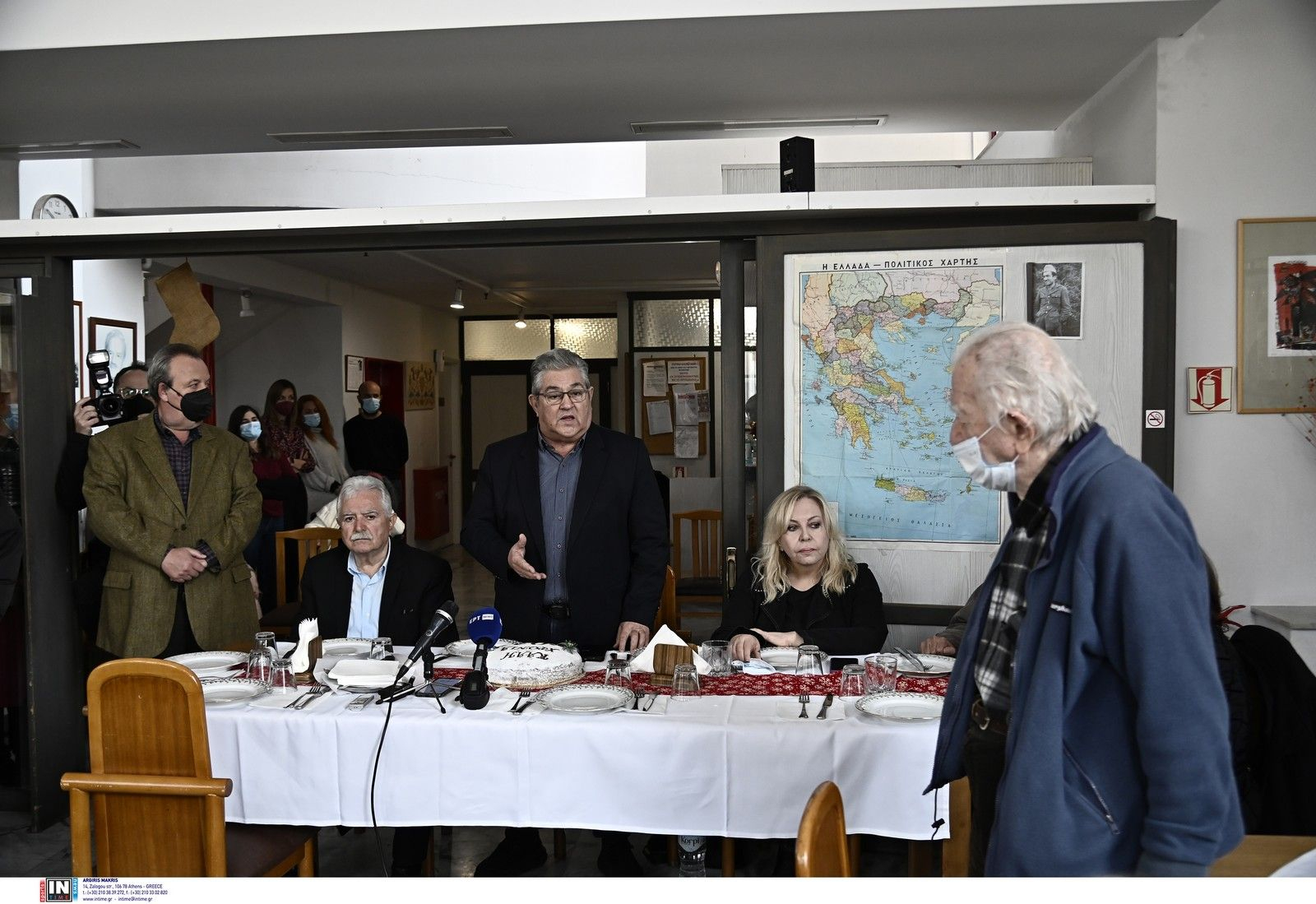 Ο Δ. Κουτσούμπας, αφού συνομίλησε με τους φιλοξενούμενους, ανάμεσα στους οποίους είναι και η γνωστή ηθοποιός Μπέτυ Βαλάση, ευχήθηκε χρόνια πολλά και καλά με υγεία και δύναμη μεταφέροντας, όπως είπε, «τις θερμές ευχές όλης της Κεντρικής Επιτροπής του κόμματος, όλων των στελεχών και μελών του ΚΚΕ που με το μυαλό και την καρδιά τους είναι μαζί μας, αυτή τη στιγμή, αυτή την ώρα στο “Σπίτι του Αγωνιστή”».