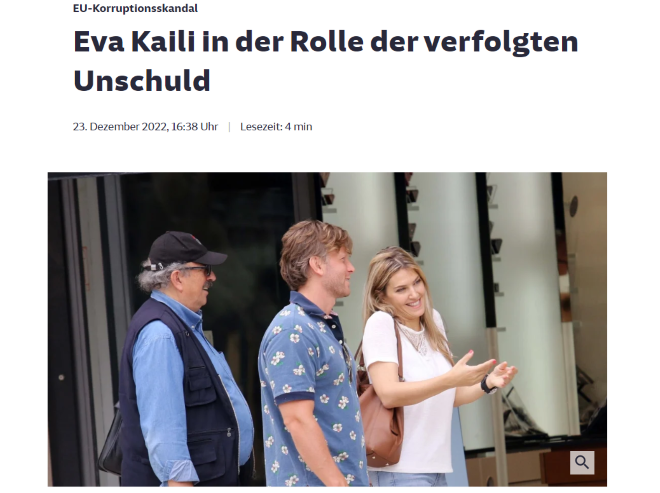 Στο άρθρο γίνεται επίσης λόγος για “εγκληματική απληστία” και την “προδομένη αγάπη” και πως “οι δικηγόροι της Εύας Καϊλή χρησιμοποιούν τις σκάλες του Δικαστικού Μεγάρου ως σκηνικό για να δώσουν μια νέα τροπή στην υπόθεση διαφθοράς: μια νέα γυναίκα και μητέρα σαν κατατρεγμένη αθώα της Ευρωπαϊκής Ένωσης”, αναφέρει το δημοσίευμα της SZ σύμφωνα με την Deutsche Welle.