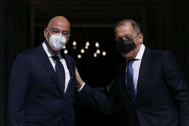 Σε θερμό κλίμα η συνάντηση του υπουργού Εξωτερικών Νίκου Δένδια με τον Ρώσο ομόλογό του Σεργκέι Λαβρόφ. Οι αναφορές στους δεσμούς των δύο χωρών και τα "καρφιά" για την Τουρκία.