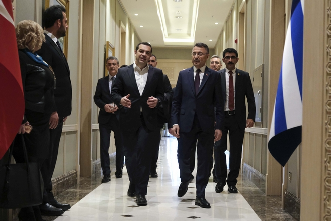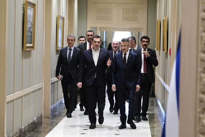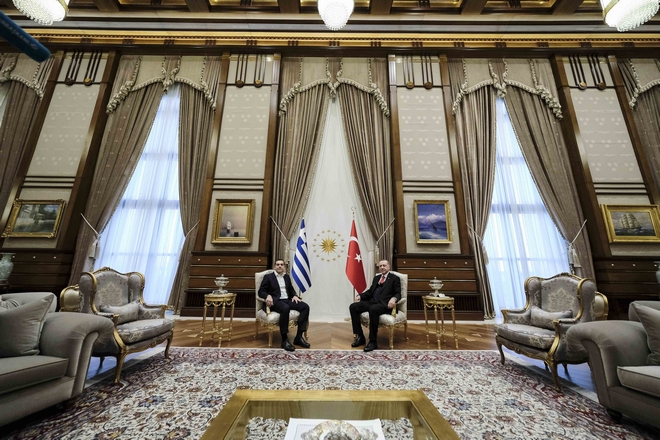 Το απόγευμα της Τρίτης ξεκίνησε η συνάντηση του Αλέξη Τσίπρα με τον Τούρκο πρόεδρο Ερντογάν στο Προεδρικό Μέγαρο στην Άγκυρα.