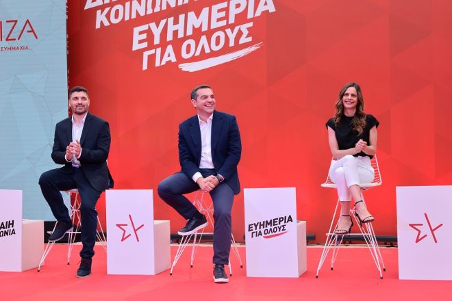 Από την χθεσινή παρουσίαση του προγράμματος του ΣΥΡΙΖΑ. Πλάϊ στον Α.Τσιπρα ο Δ.Τεμπονέρας και η Έ.Αχτσιόγλου