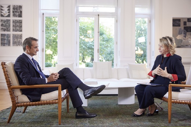 *Alexia Kefalas:* Καλησπέρα και καλώς ήρθατε στο France 24, στη συνέντευξη με τον Έλληνα Πρωθυπουργό Κυριάκο Μητσοτάκη, εδώ στο πρωθυπουργικό γραφείο. Καλή σας μέρα κύριε Πρωθυπουργέ. Kατά τη διάρκεια της Συνόδου Κορυφής του ΝΑΤΟ, η οποία θα πραγματοποιηθεί στις Βρυξέλλες, θα συναντήσετε τον πρόεδρο της Τουρκίας κ. Erdogan, καθώς η Τουρκία είναι επίσης μέλος του ΝΑΤΟ όπως και η Ελλάδα. Δεν είναι η πρώτη φορά που συναντιέστε, αλλά γίνεται μετά από μια έντονη περίοδο δυσκολιών, ιδιαίτερα στο νότιο τμήμα του Αιγαίου. Το περασμένο καλοκαίρι, η ένταση μεταξύ Τουρκίας – Ελλάδας κλιμακώθηκε λόγω των σχεδίων της Τουρκίας για γεωτρήσεις στη Μεσόγειο. Τι θα συζητήσετε με τον κ. Erdogan;