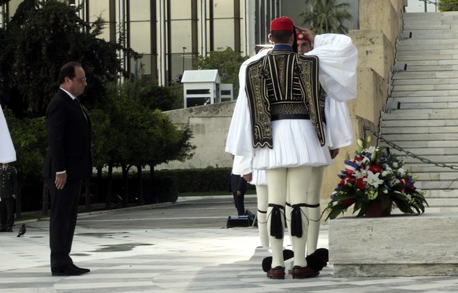 ΑΘΗΝΑ-Ο ΓΑΛΛΟΣ ΠΡΟΕΔΡΟΣ ΦΡΑΝΟΥΑ ΟΛΑΝΤ ΚΑΤΑΘΕΤΕΙ ΣΤΕΦΑΝΙ ΣΤΟΝ ΑΓΝΩΣΤΟ ΣΤΡΑΤΙΩΤΗ.ΠΑΡΟΥΣΙΑ ΤΟΥ ΠΡΩΘΥΠΟΥΡΓΟΥ ΑΛΕΞΗ ΤΣΙΠΡΑ.(Eurokinissi-ΠΑΝΑΓΟΠΟΥΛΟΣ ΓΙΑΝΝΗΣ) Eurokinissi