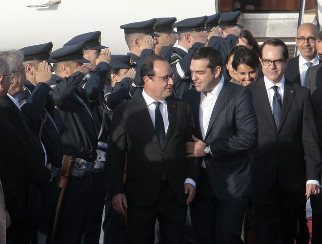 Θερμή η υποδοχή του Γάλλου Προέδρου, Φρανσουά Ολάντ από τον πρωθυπουργό Αλέξη Τσίπρα στο Ελευθέριος Βενιζέλος (Pics)