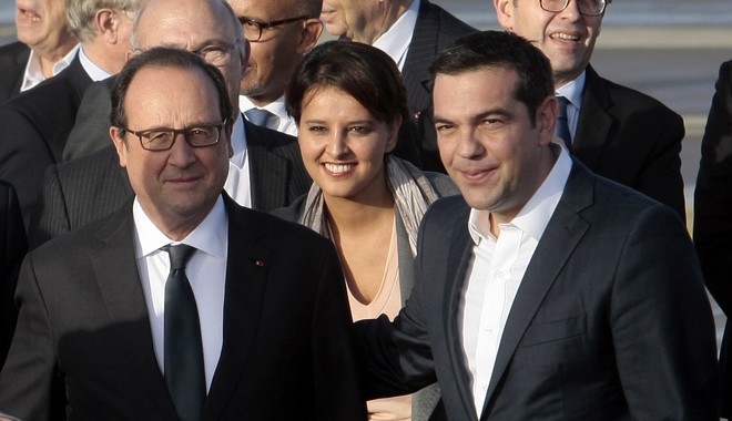 Όχι με χειραψία, αλλά με αγκαλιά χαιρετήθηκαν Ολάντ και Τσίπρας.