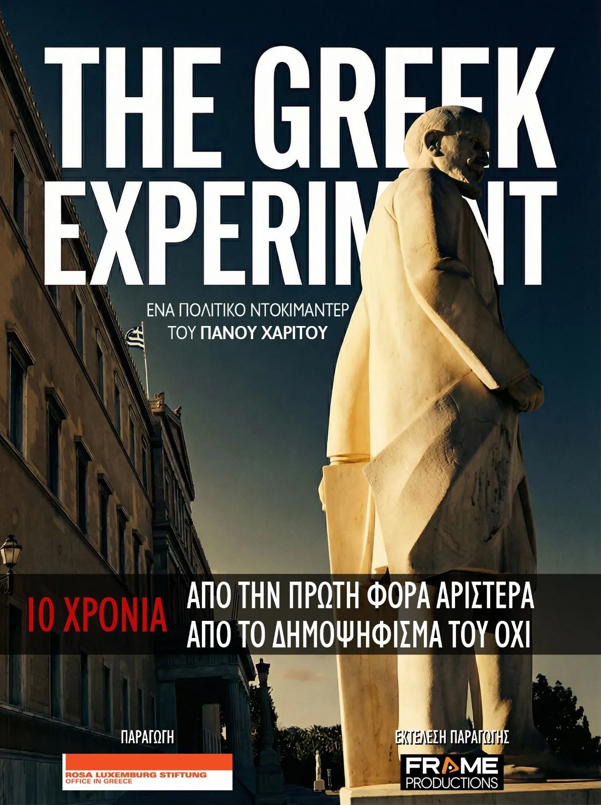 Σε επιλεγμένους κινηματογράφους της Αθήνας και της Θεσσαλονίκης θα προβάλλεται για λίγες μόνο ημέρες το πολιτικό ντοκιμαντέρ του Πάνου Χαρίτου “The Greek Experiment – Το Ελληνικό πείραμα“.