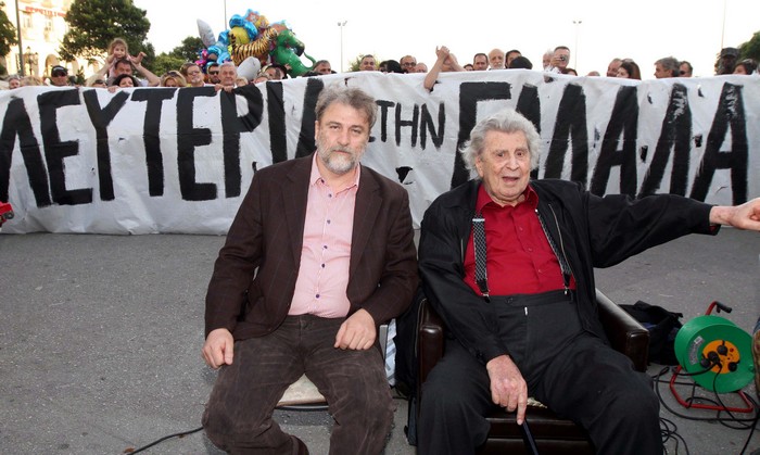 Ο Μίκης Θεοδωράκης, συνοδευόμενους από εκατοντάδες πολίτες πήγε στην πλατεία Αριστοτέλους και κάθισε σε μια καρέκλα, δηλώνοντας ότι θα μείνει εκεί μέχρι την Πέμπτη, όταν και θα πραγματοποιήσει την ομιλία του.