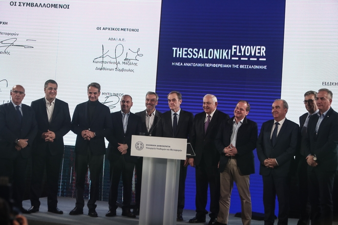 Η σύμβαση για την κατασκευή της ανατολικής περιφερειακής οδού Θεσσαλονίκης (Flyover) υπεγράφη παρουσία του Κυριάκου Μητσοτάκη και του Κώστα Καραμανλή.
