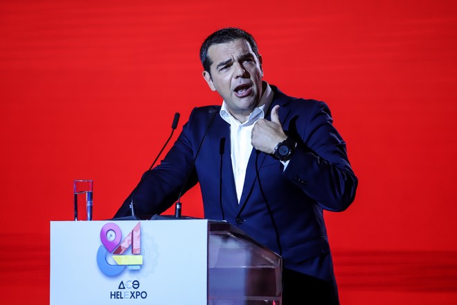 Ο πρόεδρος του ΣΥΡΙΖΑ, Αλ. Τσίπρας, στο βήμα της 84ης ΔΕΘ MotionTeam