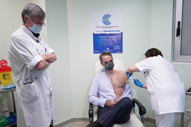 Στο ίδιο πλαίσιο, το περιοδικό αναφέρεται και στην επιλογή του πρωθυπουργού της Ελλάδας, Κυριάκου Μητσοτάκη, να φωτογραφηθεί χωρίς πουκάμισο κατά την 2η δόση του εμβολίου στο νοσοκομείο Αττικό.