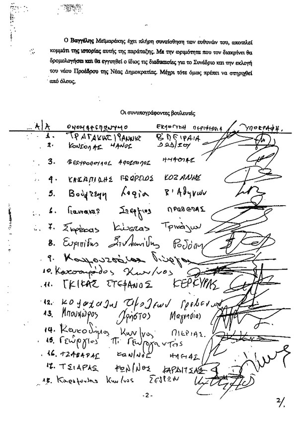 Το κείμενο των 58 βουλευτών υπέρ Μεϊμαράκη