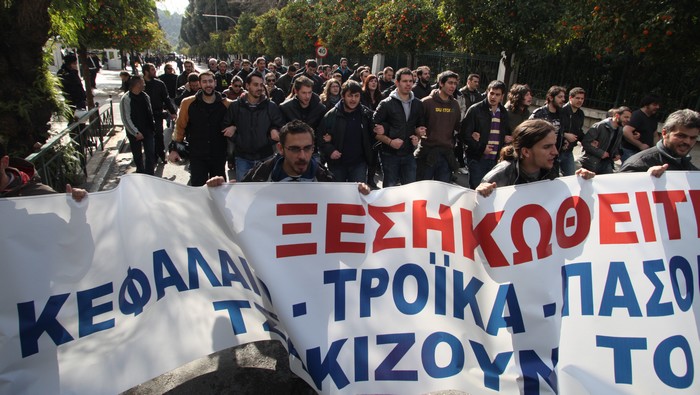 Έξω από το Μέγαρου Μαξίμου συγκεντρώθηκαν μέλη του ΠΑΜΕ. Κάλεσμα στον λαό να αντισταθεί στα νέα μέτρα λιτότητας