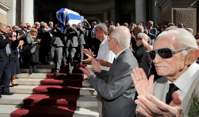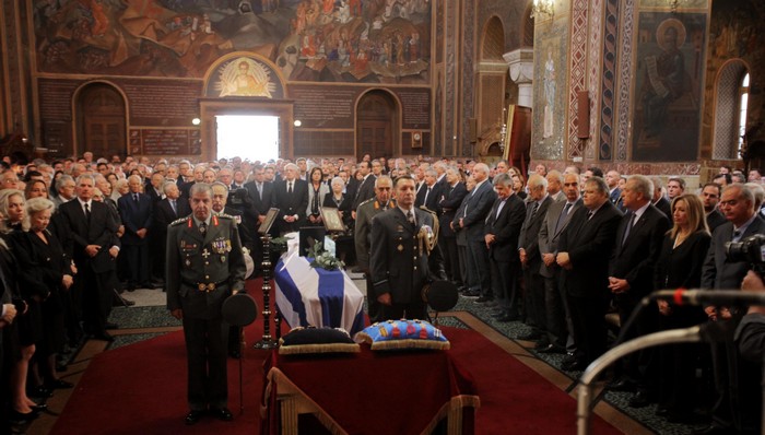 Πολίτες συγκεντρώθηκαν στον Ιερό Ναό του Αγίου Διονυσίου στο Κολωνάκι, προκειμένου να αποχαιρετήσουν το ιστορικό στέλεχος του ΠΑΣΟΚ και μια από τις σημαντικότερες μορφές της δημοκρατικής παράταξης, ενώ έξω από την εκκλησία είχε παραταχθεί άγημα και από τους τρεις κλάδους των ενόπλων δυνάμεων.