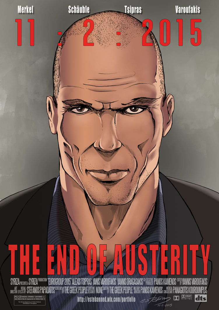 Και όμως δεν είναι αφίσα χολιγουντιανής ταινίας, όμως θα μπορούσε κάλλιστα να είναι. Ο freelance σχεδιαστής και animator Estebanned ή αλλιώς Στέφανος Παπαδάτος, πήρε το πενάκι του και αποτύπωσε την έμπνευση που είχε για τη “μάχη” των Βρυξελλών και το τέλος της λιτότητας.