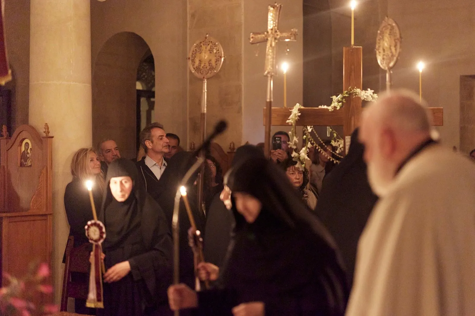 Τον Επιτάφιο στην Ιερά Μονή Μεταμορφώσεως του Σωτήρος στα Χανιά παρακολούθησε ο πρωθυπουργός Κυριάκος Μητσοτάκης, συνοδευόμενος από τη σύζυγό του.