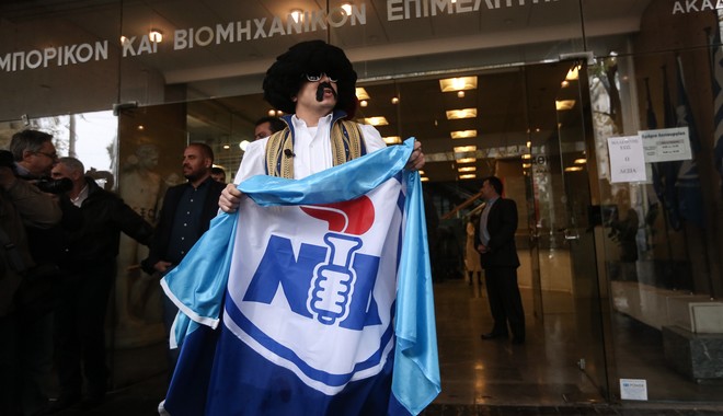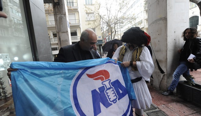 Μια αναπάντεχη έκπληξη περίμενε τον υποψήφιο για τη θέση του προέδρου της Νέας Δημοκρατίας, Βαγγέλη Μεϊμαράκη, βγαίνοντας από το κτίριο του ΕΒΕΑ όπου βρέθηκε για να παρακολουθήσει πως διεξάγεται η εκλογική διαδικασία. Εκεί τον περίμενε ο γνωστός για τις φάρσες του, Τσολιάς από την Ελληνοφρένεια με μια τεράστια σημεία της Νέας Δημοκρατίας.
