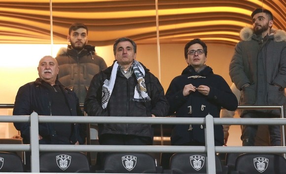 Ο υπουργός Οικονομικών, Ευκλείδης Τσακαλώτος, παρακολούθησε από τη σουίτα του Ιβάν Σαββίδη την αναμέτρηση του ΠΑΟΚ με τη Σάλκε για το Europa League