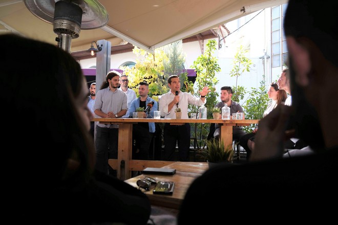 Σε ένα κοινό, με έντονη και τη νεανική παρουσία, σε κεντρική καφετέρια της πόλης, ο πρόεδρος του ΣΥΡΙΖΑ ανέφερε χαρακτηριστικά πως «αυτές οι συζητήσεις μας βοηθούν να κάνουμε ‘ταμείο’», «μας δίνεται ο χρόνος να έρθουμε σε επαφή με τους ανθρώπους του μόχθου», προσθέτοντας ότι ο ΣΥΡΙΖΑ δεν επιλέγει τον εύκολο δρόμο, αλλά το δρόμο μιας νέας αδιαμεσολάβητης επικοινωνίας με τους πολίτες. Σε αυτήν την προσπάθεια έχουν σημαντικό ρόλο οι νέες τεχνολογίες, είπε, παραπέμποντας στην ψηφιακή πλατφόρμα που εγκαινίασε το κόμμα ευελπιστώντας ότι θα αποτελέσει πλατφόρμα διαλόγου. Στόχος, όπως υπογράμμισε, «να πετύχουμε ένα πείραμα συμμετοχής, φτιάχνοντας το κόμμα της νέας εποχής».