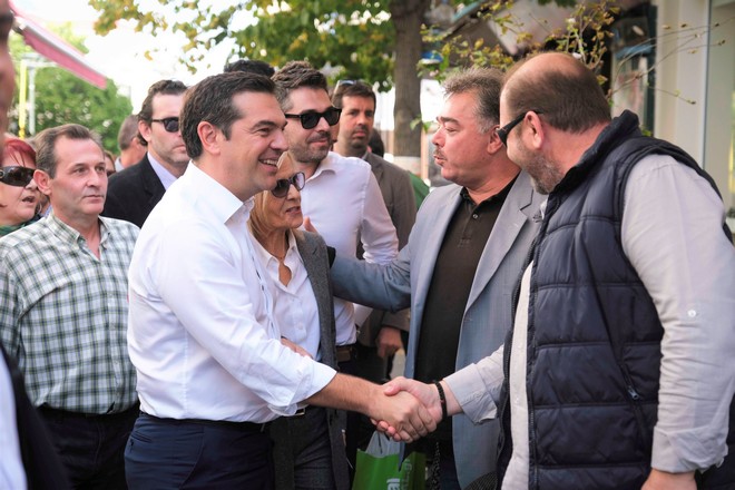 Νωρίτερα, κατά τον περίπατο του στην πόλη, είχε την ευκαιρία να συνομιλήσει με πολίτες, ενώ μεταξύ των στιγμιοτύπων, και ένα θερμό τετ-α-τετ που είχε στον πεζόδρομο με τον δεξιοτέχνη του κλαρίνου Γιώργο Μάγκα. Ο λαϊκός μουσικός βρισκόταν ανάμεσα στους πολίτες που περίμεναν να υποδεχθούν τον πρόεδρο του ΣΥΡΙΖΑ στην πόλη τους. «Να ξανακερδίσεις, για να μπορέσεις να βοηθήσεις τον απλό κόσμο», του ευχήθηκε, αγκαλιάζοντάς τον και καλώντας τον να μείνει «αιώνια». «Όχι ρε φίλε αιώνια, αιώνια είναι η τέχνη η δικιά σου», του απάντησε, χαμογελώντας ο Αλέξης Τσίπρας.