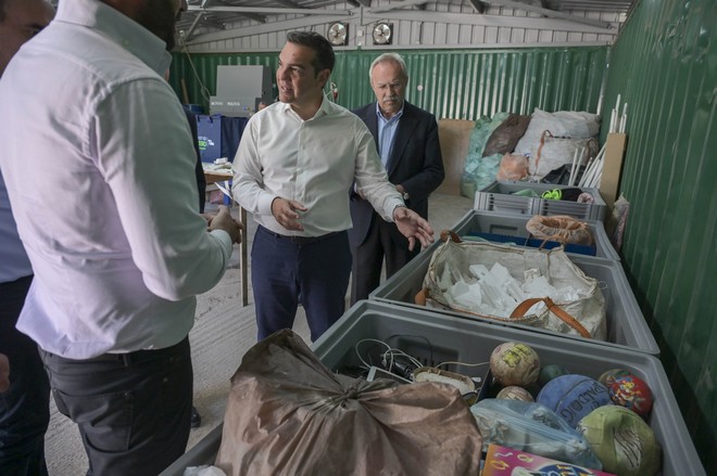 Τέλος, ο κ. Τσίπρας είχε την ευκαιρία να επισκεφτεί το Κέντρο Κυκλικής Καινοτομίας Τήλου και να ενημερωθεί αναλυτικά για όλη τη διαδικασία που ακολουθείται και τις εργασίες που γίνονται βήμα προς βήμα και έχουν οδηγήσει την Τήλο να είναι πρωτοπόρος στην ανακύκλωση και στην επίτευξη του στόχου για μηδενικά απόβλητα.