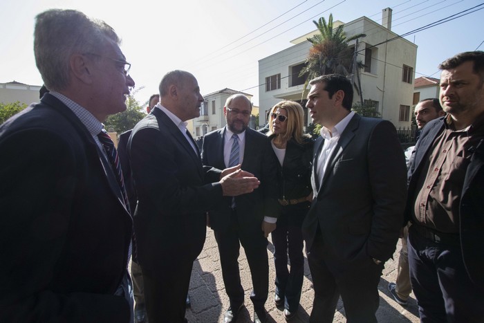 Στο σημείο όπου επαναλαμβάνεται εδώ και μήνες η τραγωδία του προσφυγικού βρίσκεται ο πρόεδρος του Ευρωκοινοβουλίου Μάρτιν Σουλτς, συνοδευόμενος από τον πρωθυπουργό Αλέξη Τσίπρα. Ο Γερμανός σοσιαλιστής θέλησε να επισκεφτεί το Hot Spots και να επικοινωνήσει με τους τοπικούς άρχοντες για να διαπιστώσει ιδίοις όμμασι το μέγεθος του προβλήματος. Οι δύο άνδρες ταξίδεψαν μαζί από την Αθήνα και προσγειώθηκαν το πρωί της Πέμπτης στο αεροδρόμιο της Μυτιλήνης.