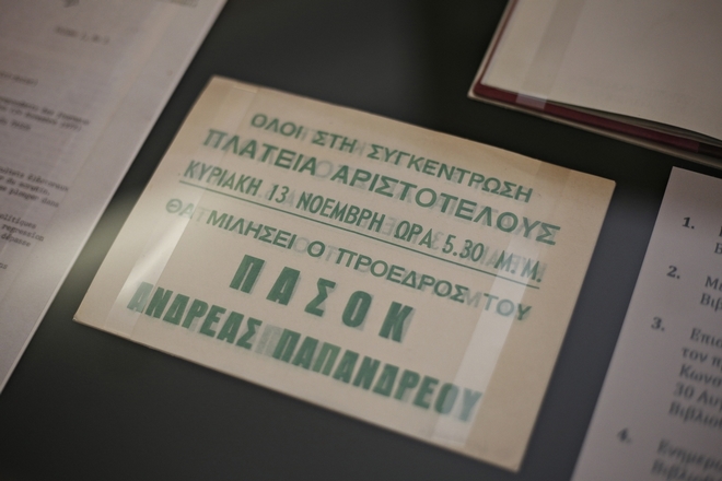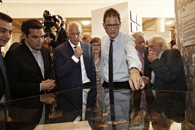Ο πρωθυπουργός είχε συνομιλία με τον πιο έμπιστο συνεργάτη του Ανδρέα Παπανδρέου Αντώνη Λιβάνη αλλά και με τον Γιώργο Παπανδρέου ο οποίος έδωσε το παρών μαζί με τα αδέλφια του Νίκο, Ανδρίκο και Σοφία. Στο Περιστύλιο της Βουλής ήταν όμως και η Δήμητρα Λιάνη Παπανδρέου. Στην έκθεση που εγκαινίασε ο Πρόεδρος της Δημοκρατίας, Προκόπης Παυλόπουλος, παρευρέθηκε η νυν πρόεδρος του ΠΑΣΟΚ Φώφη Γεννηματά, ο πρώην πρωθυπουργός Κώστας Σημίτης, ο πρώην πρόεδρος του κόμματος Ευάγγελος Βενιζέλος και ο επικεφαλής του Ποταμιού, Σταύρος Θεοδωράκης. Επίσης παρέστη ο πρωθυπουργός της υπηρεσιακής κυβέρνησης του 1989, Ιωάννης Γρίβας. Τον Πρόεδρο της Δημοκρατίας και τον πρωθυπουργό συνόδευσε ο νυν πρόεδρος της Βουλής Νίκος Βούτσης. Επίσης βρέθηκαν στην εκδήλωση οι πρώην πρόεδροι της Βουλής Βαγγέλης Μεϊμαράκης, Φίλιππος Πετσάλνικος, Βύρων Πολύδωρας, Δημήτρης Σιούφας και Απόστολος Κακλαμάνης.