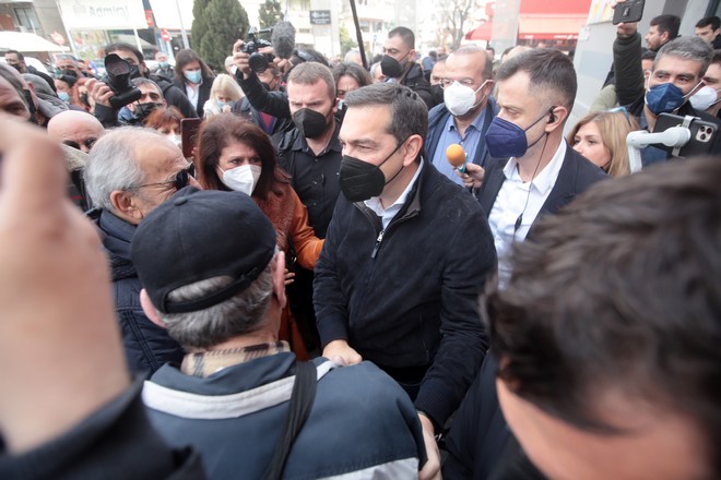 Οι πολίτες της Καλαμαριάς υποδέχτηκαν τον πρόεδρο του ΣΥΡΙΖΑ-ΠΣ νωρίτερα με χειροκροτήματα και επιδοκιμασίες.