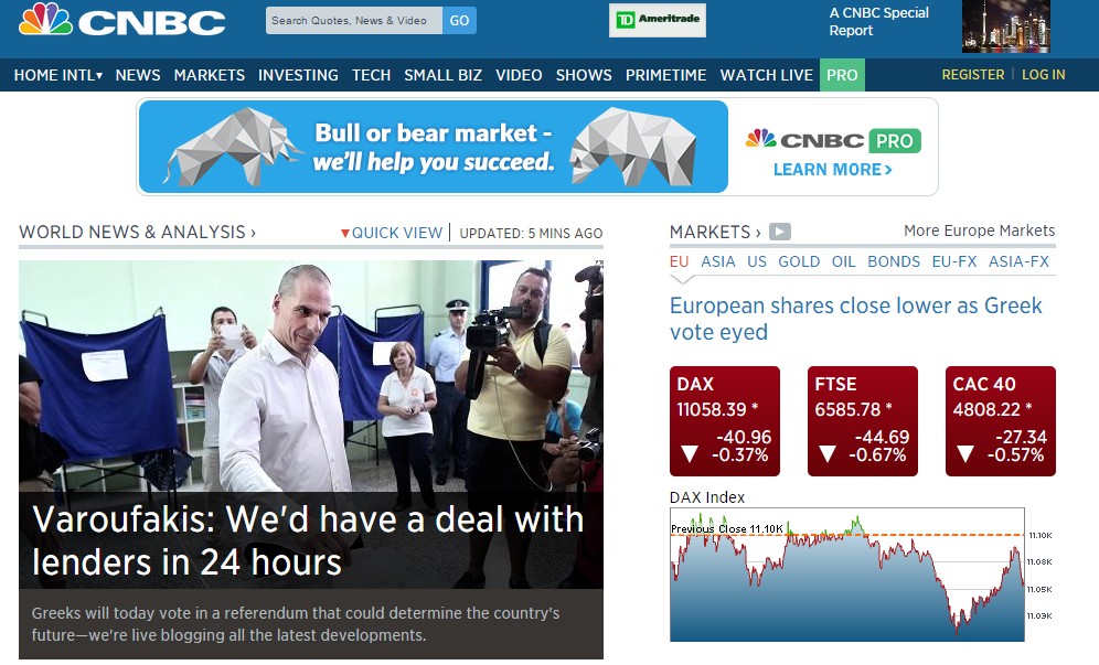 Αυτή τη φορά μιλώντας σε ανταποκριτή του αμερικανικού δικτύου CNBC ισχυρίστηκε πως αν επικρατήσει το ΟΧΙ στο δημοψήφισμα η κυβέρνηση θα μπορούσε να καταλήξει σε συμφωνία με τους δανειστές μόλις σε 24 ώρες.