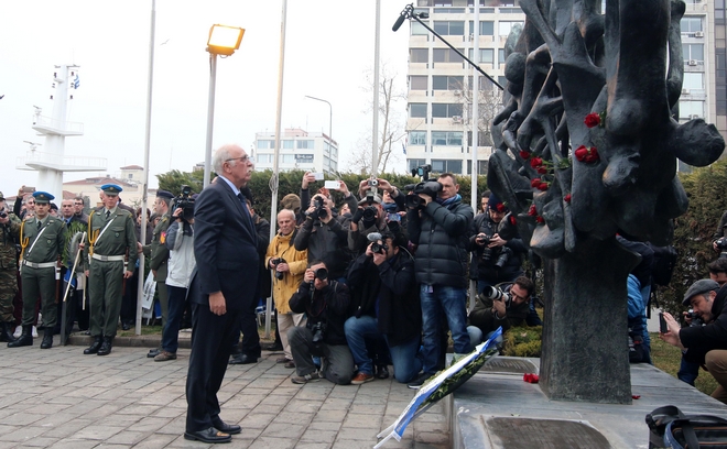 Και η δική μας πλευρά δεν θα μπορούσε παρά να είναι η δημοκρατία, η κοινωνία, η αλληλεγγύη, οι ανθρώπινες αξίες. Οφείλουμε σήμερα να λειτουργούμε με γνώμονα το μετασχηματισμό της ιστορίας σε εθνική αυτογνωσία ώστε να μην επιτρέψουμε την επανεμφάνιση του φρικτού προσώπου του ναζισμού και των διαφόρων μορφωμάτων του. Πρόκληση στην οποία πρέπει να απαντήσει σήμερα και η ίδια η Ευρώπη. Η θυσία των Ελλήνων Εβραίων μαρτύρων και ηρώων του ολοκαυτώματος αποτελεί σύμβολο ελευθερίας και ειρήνης, που θα εξακολουθεί να στέλνει μηνύματα ειρήνης και συναδέλφωσης των λαών σε όλο τον κόσμο”.