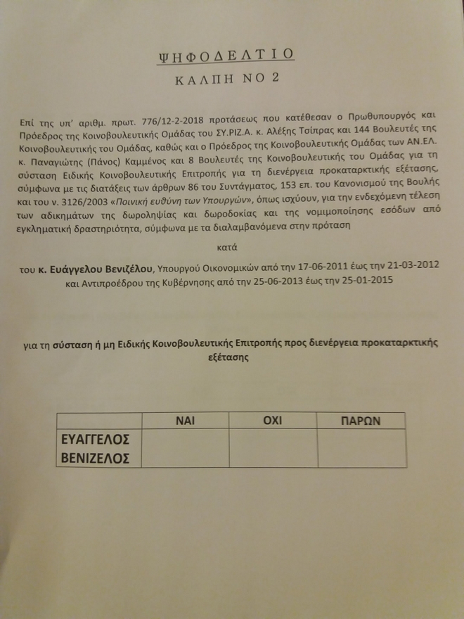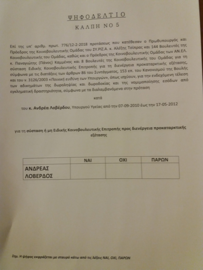 Επέμεινε “να στηθεί μία κάλπη με ένα και μόνο ερώτημα: Ναι ή οχι στη σύσταση προανακριτικής επιτροπής και σε αυτό το ερώτημα εμείς ψηφίζουμε ναι”.