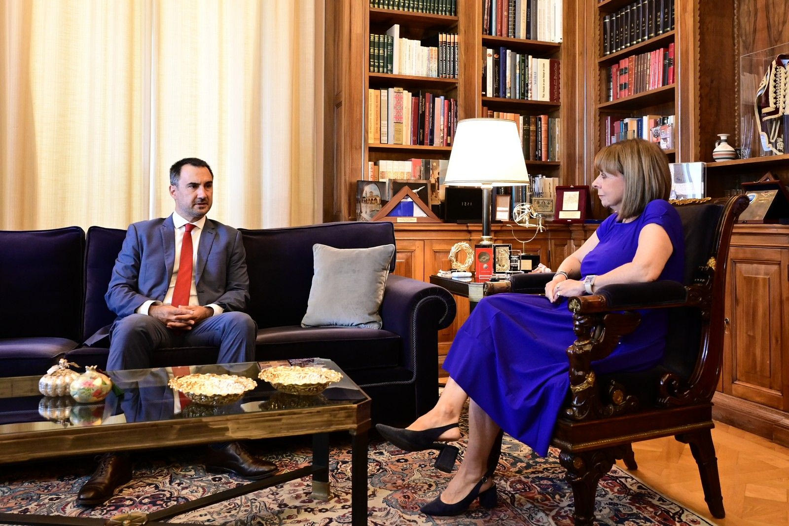 Συνάντηση της Προέδρου της Δημοκρατίας Κατερίνας Σακελλαροπούλου με τον Πρόεδρο της Κοινοβουλευτικής Ομάδας της Νέας Αριστεράς Αλέξη Χαρίτση Eurokinissi
