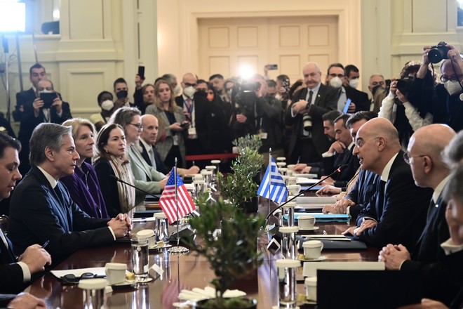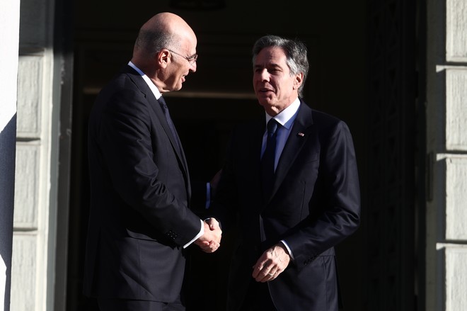 Στιγμιότυπο από τη συνάντηση Μπλίνκεν - Δένδια Eurokinissi