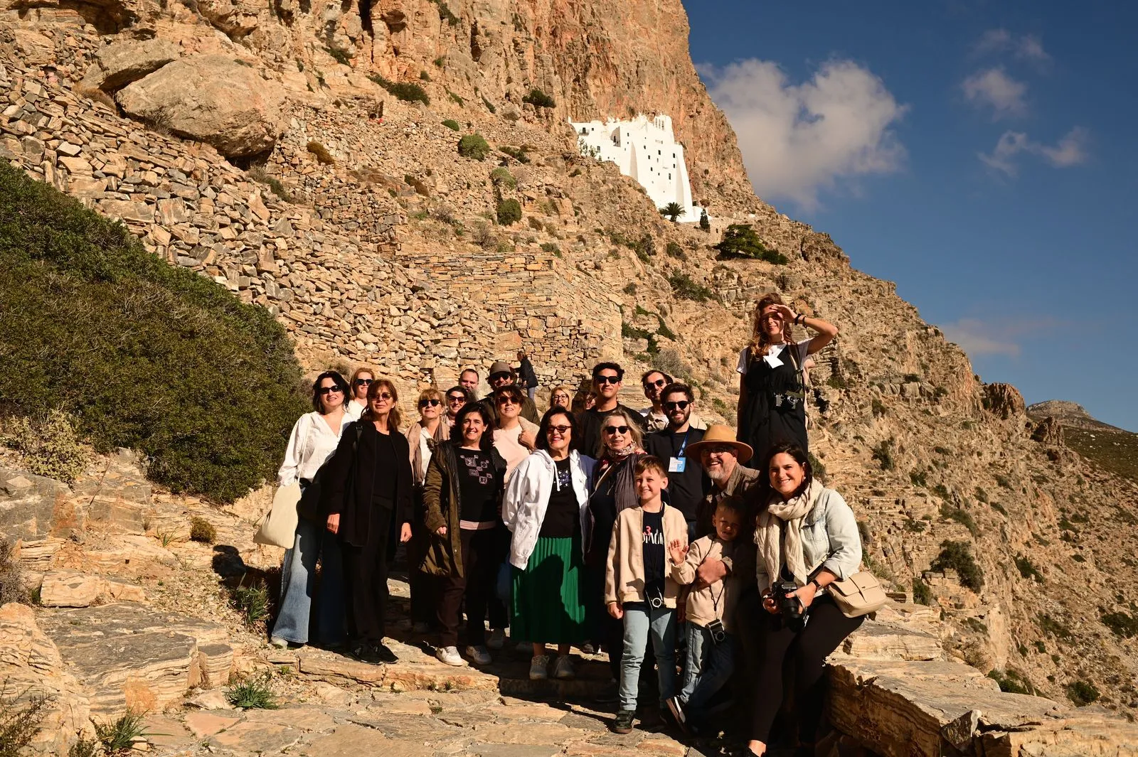 Το ζήσαμε από κοντά και είναι ακριβώς αυτό. Στα χωριά του νησιού, στις μικρές αυλές και γύρω από τα τραπέζια των γευμάτων, νιώθεις πως ανοίγεται μπροστά σου μια κοινότητα που σε περικλείει. Από το εκκλησιαστικό μουσείο στα Θολάρια και την εκπληκτική εκκλησία των Αγίων Αναργύρων, φτάσαμε στην Κάτω Μεριά και τον Ελληνιστικό Πύργο της Αγίας Τριάδας. Και από τα παραδοσιακά εδέσματα στην ταβέρνα «Μαρουσώ» γυρίσαμε στην Αιγιάλη, περπατήσαμε τη Χώρα και τα Κατάπολα, ενώ ανεβαίνοντας κατανυκτικά στη Χοζοβιώτισσα, μάθαμε βήμα-βήμα την ιστορία του νησιού, τα βότανα και πώς μαγειρεύουν το “πατατάτο”.