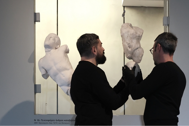 Συγκίνηση για την επιστροφή των τριών θραυσμάτων από τις μετόπες, τη ζωφόρο και τα αετώματα του Παρθενώνα από τα Μουσεία του Βατικανού. Τι περιλαμβάνουν. Δείτε φωτογραφίες από την επανένωση.
