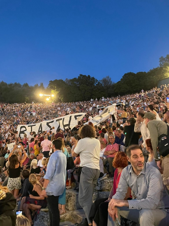Επίδαυρος: Θεατές σήκωσαν πανό με σύνθημα “Βιαστής είναι”