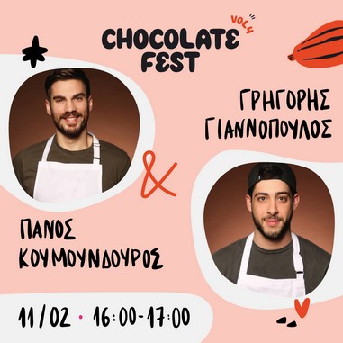 Θες να συναντήσεις από κοντά τους αγαπημένους σου pastry chefs; Το Chocolate Fest αποτελεί τον ιδανικό χώρο, αφού για πέντε ημέρες celebrity chefs και τεχνίτες της γεύσης θα σε ταξιδέψουν με τις δημιουργίες τους στον δικό τους κόσμο. Οι πρώην παίκτες του MasterChef Μανώλης Σαρρής, Γρηγόρης Γιαννόπουλος, Πάνος Κουμουνδούρος, Καλλιόπη Μπεζαντέ και Μαργαρίτα Νικολαίδη, καθώς και o pastry chef Χρήστος Βέργαδος, η Αγγελική Τσουκαλά και η food blogger Madame Ginger και πολλοί ακόμη θα είναι εκεί και θα σε περιμένουν για λαχταριστά live cooking sessions. Save the dates.