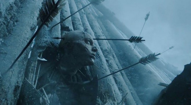 Οι Walkers θερίζουν: σκελετωμένοι πολεμιστές, ανατριχιαστικά νεκροζώντανα παιδάκια, επιτίθενται, σκοτώνουν, συνεχίζουν, χωρίς σταματημό, παρότι οι Αγριοι, οι Φρουροί, ακόμα κι ο τρανός Γίγαντας Γουαν-Γουαν κάνουν ό,τι μπορούν για να τους απωθήσουν. Η ίδια η μάχη δεν έχει τη δύναμη αντίστοιχων των προηγούμενων σεζόν – είναι εντυπωσιακή, αλλά όμοια με zombie battles που μας μοιάζουν οικείες.