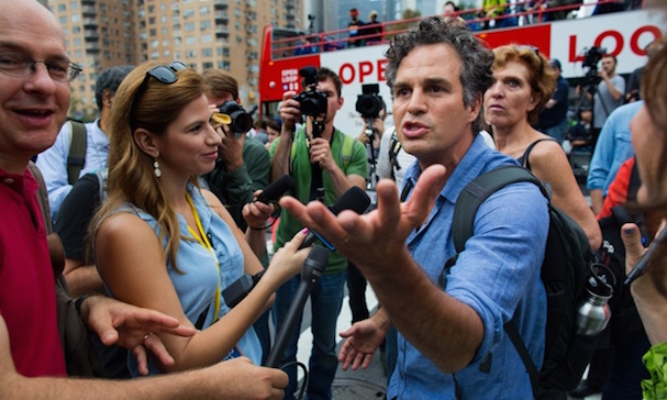 Ο Μαρκ Ράφαλο δεν πρωταγωνιστεί απλώς σε μερικές από τις σπουδαιότερες ταινίες των τελευταίων 15 χρόνων. Τον βλέπουμε συχνά στις πρώτες γραμμές και των σπουδαιότερων πολιτικών ρευμάτων. Δε φοβάται να πει δυνατά τη γνώμη του, δε φοβάται να σπάσει την πολιτική ορθότητα στην οποία ορκίζονται οι ηθοποιοί του Χόλιγουντ και επίσης το κάνει μ’ έναν γήινο, απλό, ανθρώπινο τρόπο – μακριά από διαφημιστικές αυτοαναφορικές κορώνες. Διαδηλώσεις για το περιβάλλον, την διάσωση των υδάτινων πόρων, occupy wall street, το δικαίωμα στο γάμο των ομόφυλων ζευγαριων, γυναικεία θέματα – ο Μαρκ Ράφαλο είναι εκεί.