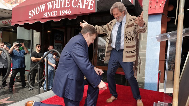 Εκεί ήταν και οι συμπρωταγωνιστές του από την ταινία «Kong: Skull Island», Τομ Χιντλστον και Μπρι Λάρσον για να του παρουσιάσουν το Αστέρι. Αλλά αυτός που έκλεψε την παράσταση ήταν, για άλλη μια φορά, ο κολλητός φίλος του ο Τζεφ Μπρίτζες o οποίος έκανε την εισαγωγή ως «The Dude» και παρουσίασε τον ηθοποιό. Φορώντας μάλιστα το κλασική πλέον ζακέτα από την ταινία, και με τις ζητωκραυγές του κόσμου που είχε μαζευτεί εκεί, ο Μπρίτζες επανέλαβε τα λόγια από το εγκώμιο του που είχε πει ο Γουόλτερ Σόμπτσακ, ο χαρακτήρας του Γκούντμαν από την ταινία «The Big Lebowski» των αδερφών Κοέν, λίγο πριν σκορπίσει τις στάχτες του Ντόνι, τελειώνοτας με το «good afternoon, sweet prince».