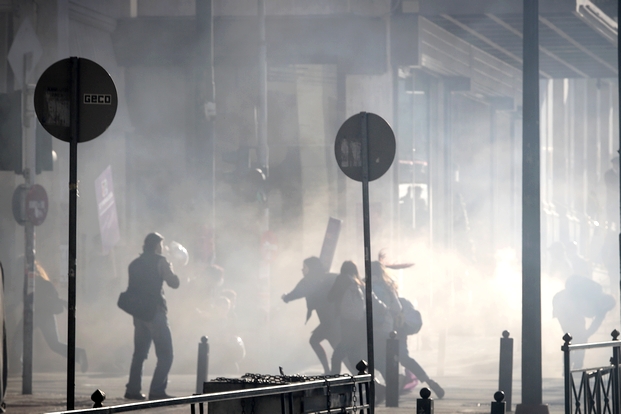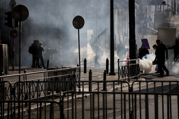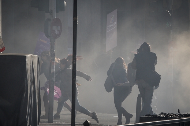 Όχι, δεν έγινε κάποια διαδήλωση στο Σύνταγμα, αλλά το «σκηνικό» αυτό στήθηκε για τις ανάγκες της ταινίας για την οποία γίνονται γυρίσματα εκεί από το πρωί.