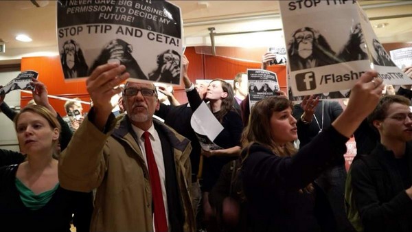 Στην τρίτη οι Flashmob εισβάλλουν και διακόπτουν επίσημες εκδηλώσεις υπέρ των εμπορικών συμφωνιών ΤΤΙΡ και CETA. Τραγουδώντας, και πάντα με το χαμόγελο στα χείλη.
