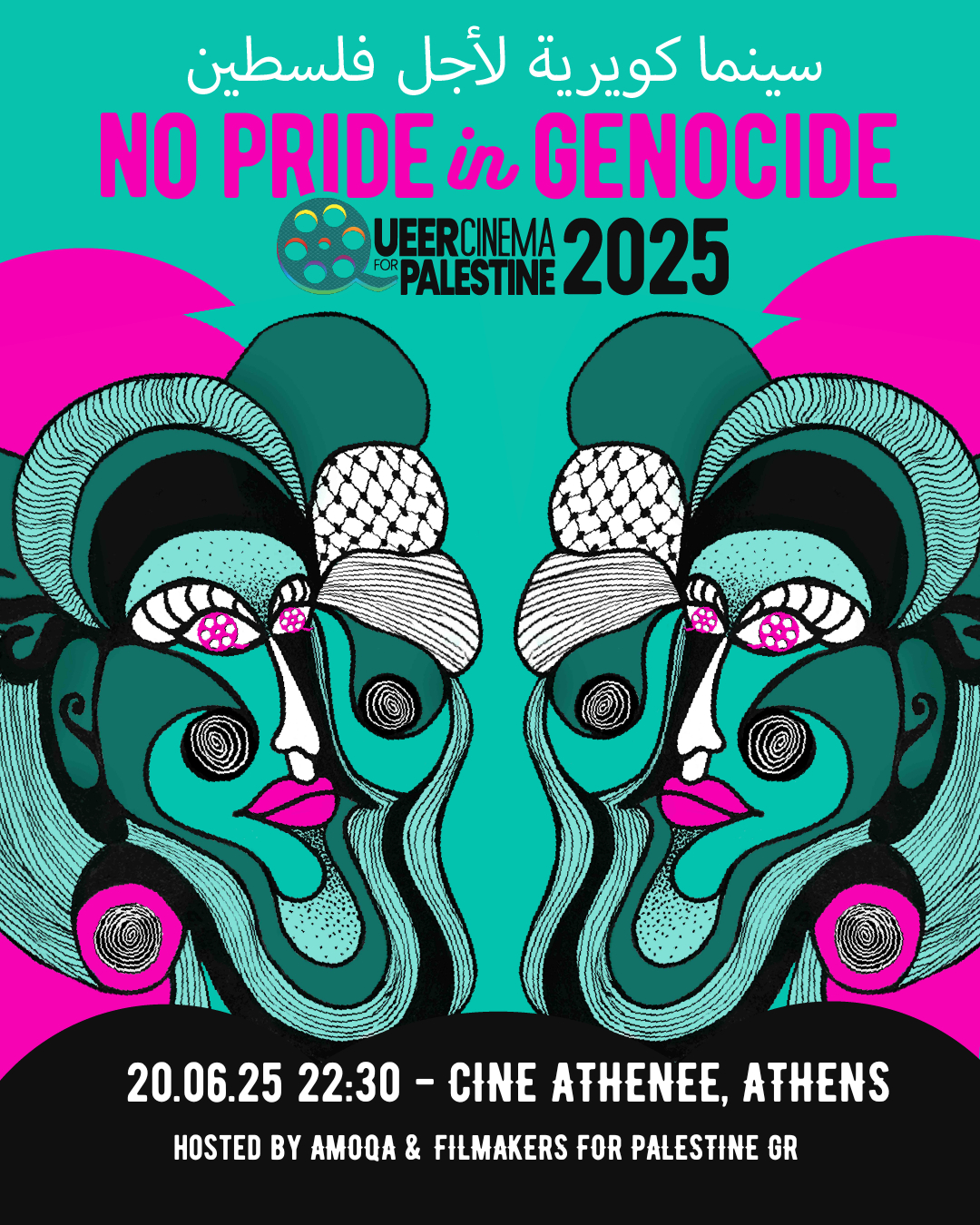 Τo AMOQA και τα Filmmakers For Palestine GR παρουσιάζουν το Queer Cinema for Palestine (QCP) στο πλαίσιο του παγκόσμιου προγράμματος μικρού μήκους ταινιών «No Pride in Genocide» την Παρασκευή, 20/6/2025 στην Αθήνα στον κινηματογράφο «ΑΤΗΕΝΕΕ», στις 22:30, με ελεύθερη συνεισφορά. Τα έσοδα της εκδήλωσης θα διατεθούν σε queer συλλογικότητες της Παλαιστίνης.