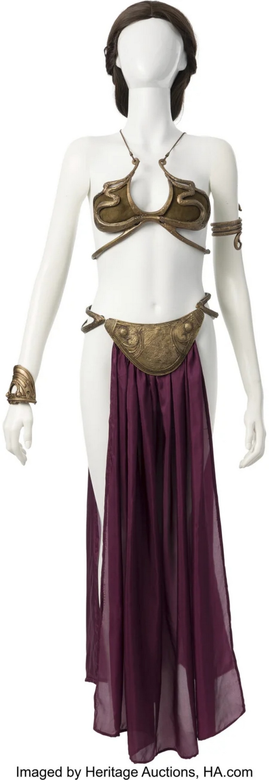 Το κοστούμι περιλάμβανε το μπικίνι καθώς και τα αυθεντικά δαχτυλίδια και βραχιόλια που φορούσε η Φίσερ στη διάσημη σκηνή της ταινίας «Star Wars: Episode VI Return Of The Jedi» (1983) κατά την οποία η Λέια αιχμαλωτίστηκε από τον αρχιμαφιόζο Jabba the Hutt (ένας χαρακτήρας του Star Wars που θυμίζει μεγάλο γυμνοσάλιαγκα) και κρατήθηκε αλυσοδεμένη στον θρόνο του.