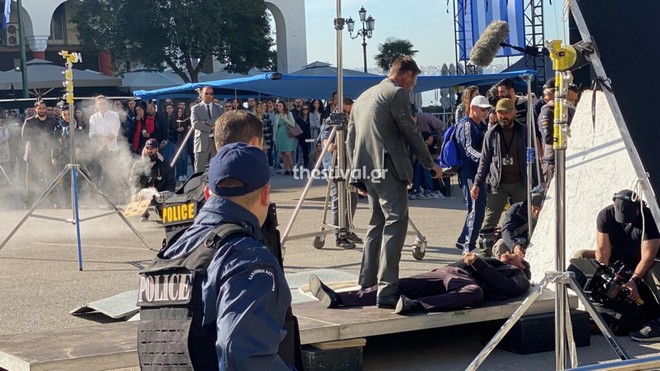 Συνεχίζονται τα γυρίσματα της ταινίας "The Bricklayer" στη Θεσσαλονίκη. Εντυπωσιακές εικόνες με τον "ένοπλο" Άαρον Έκχαρτ στην πλατεία Αριστοτέλους.